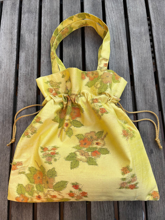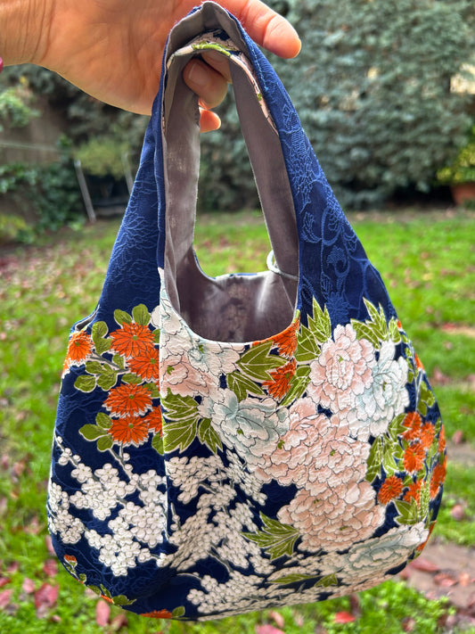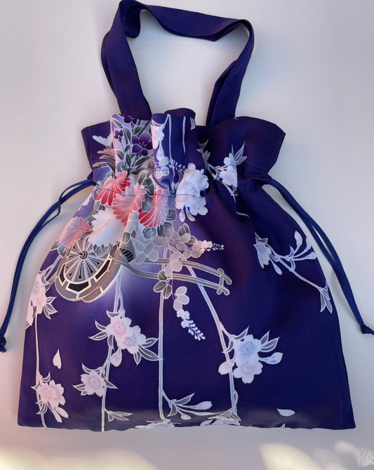 Kinchaku Toto Silk bag - Flower / Iris azul