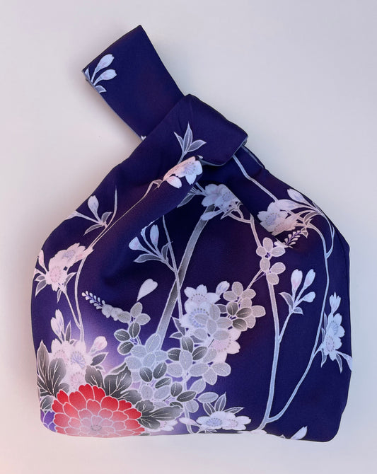 Kinchaku Toto Silk bag - Flower / Purple purple